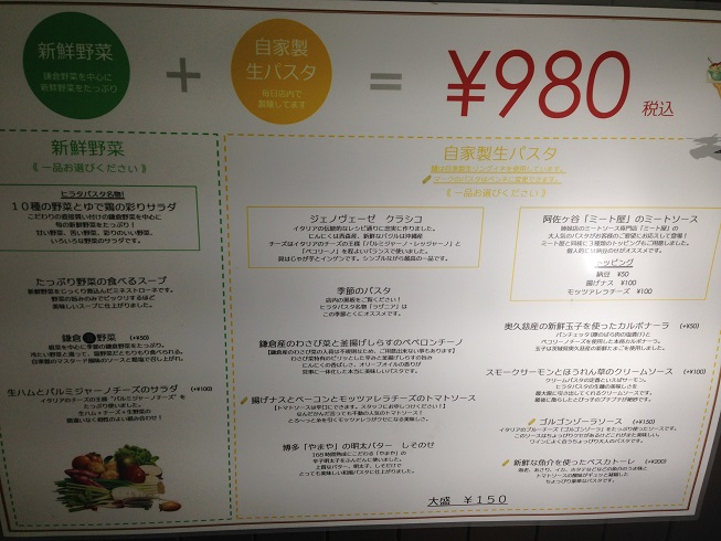 選ぶものによってはオプション金額がかかるので、一番ベーシックなものを選びました。パスタについては、かなり迷ったのですが、胃腸が疲れていたので、あっさりしていたワサビ菜のペペロンチーノにしました。
