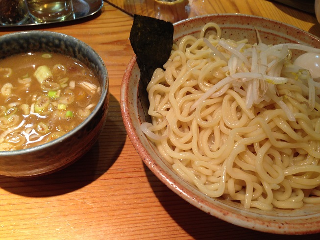 池袋から要町の方面にかなり歩いたところにあるお店で、半地下になっていて気付きにくいです。「夜のラーメン」的なものが看板に書いてあり、気になったのですが、ランチタイムだったので、素直につけ麺を注文しました。あつもり、ひやもりから選べて、季節がらひやもりにしました。
