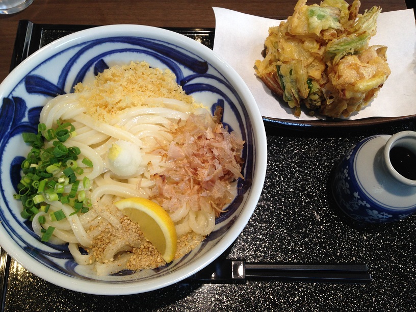 出てきたうどんは、ただのうどんでなく、ゴマや大根おろし、レモンなどが添えてあって上品な感じでした。