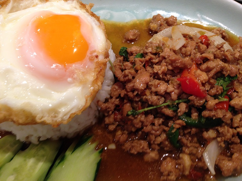 肝心のガパオも想像していたよりも辛くて、半熟の目玉焼きと混ぜて食べたら美味しかったです。本当に、タイの屋台って感じでした。行ったことはないですけどね。