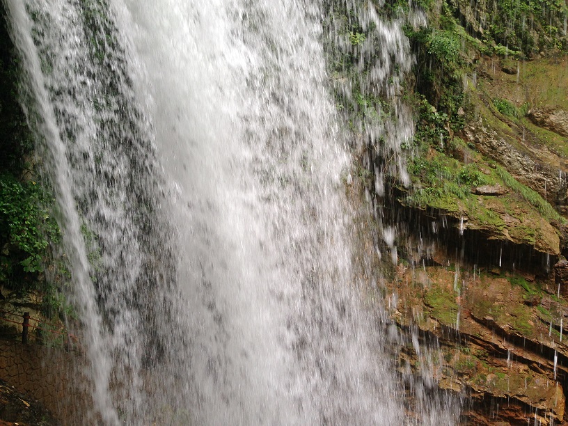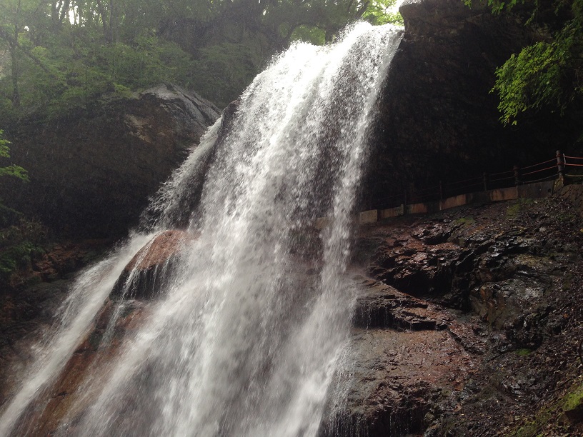 まず、最初に行ったのは、滝。「滝なんて、けっ」と思っていたら、この雷滝というのは滝の裏側に入ることができて、想像以上に迫力があって良かったです。