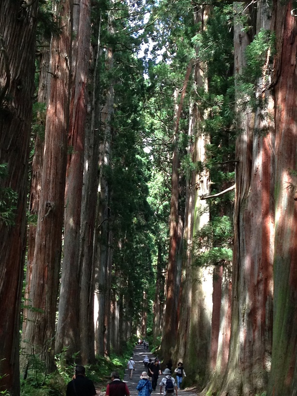 杉の並木を抜けて、奥社へと向かうのですが、ゆるやかな上りが意外にきつく、最後の急な坂と会談は非常にきつかったです。