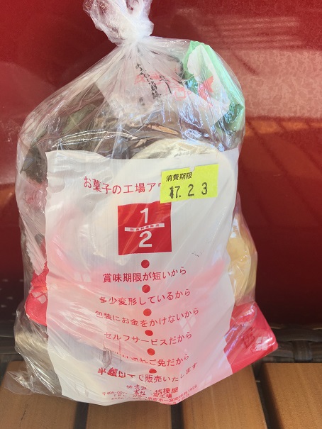 周辺のプレイスポットで、良かったのは信玄餅を作っている桔梗工場。当日賞味期限のものを袋に詰め放題にできます。そのお値段はなんと220円。