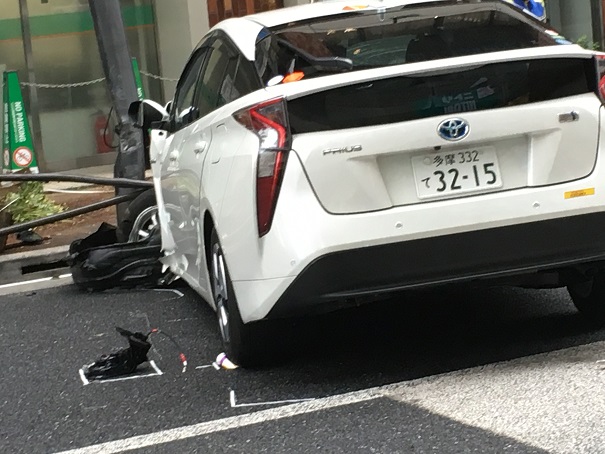 死者が出なかったのがせめてもの救い。どうして、そんな角度で歩道に突っ込むのという感じで突っ込んでいました。