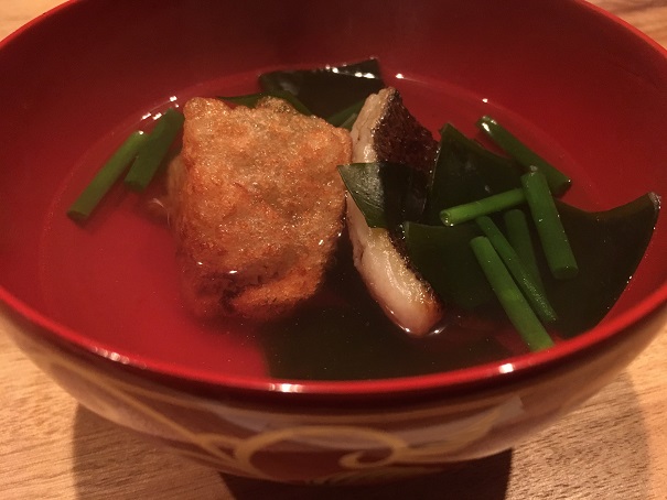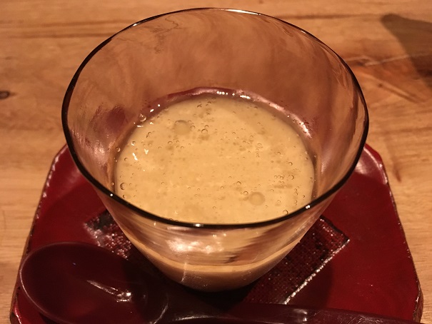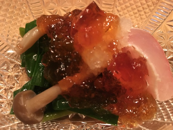 厨房がとても静かだなと思っていたら、スタッフの皆さん、マイクにイヤホンをつけていて、小声で指示を出しており、お客さんの食事を邪魔しないように配慮しているところも素敵でしたし、シェフの柔和そうな立ち振る舞いも「実るほど頭が下がる稲穂かな」的で良かったです。