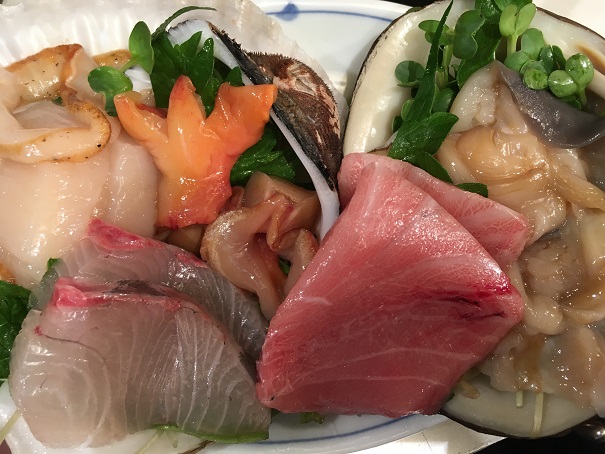 で、びっくりするぐらい、美味しかったのが刺身の盛り合わせです。トロも美味しかったですけど、貝がとても新鮮で、食感もコリコリしていて最高でした。かなりのクオリティです。刺身の盛り合わせはマストだと思います。