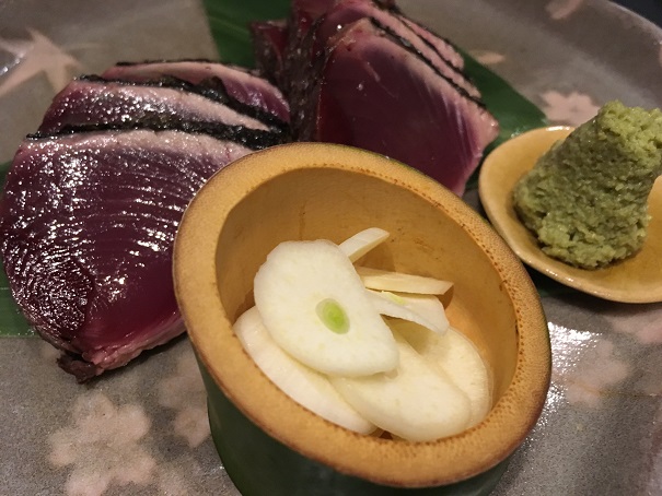 カツオが美味しいということで、生のカツオとカツオの焼き切りの両方を頼みました。どちらも、ボリューム感があって良かったです。