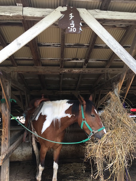 お目当ての乗馬体験。私が乗ったのはホタル。富良野だけにホタルという名らしいです。