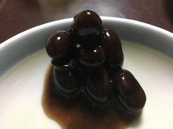 正月に食べて、感激しました。甘さ控えめ、上品で、大きな黒豆じゃないですか。私はそれほど黒豆は好きじゃないんですが、これは美味しくて、もう1つ買っておけば良かったと後悔しました。