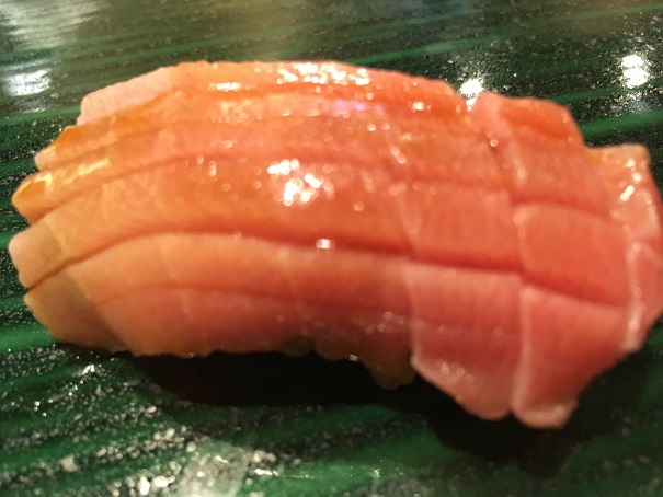 セットで注文しましたが、最初が中トロだったのが意外でした。味も美味しいし、見た目も手が込んでいて良かったです。