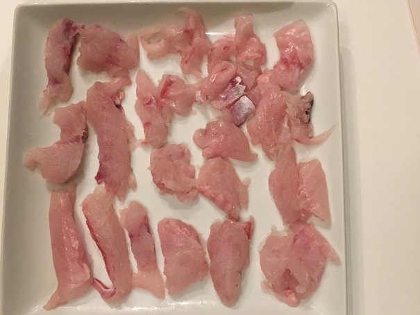 白身魚なのに、脂の乗りがすごくて、たまりません。内臓の取り方がイマイチだったせいか、焼いたら形が崩れちゃいましたが、味は最高です。