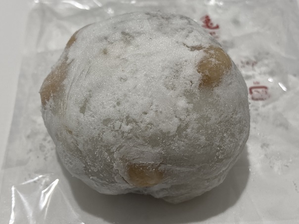 存在感のある白い粉と、触った時の餅の柔らかさで、食べる前から期待が膨らみ、実際、食べてみると予想通りの美味しさ。少しすると待望のあんこ。甘すぎず、上品でいいです。そして、豆が予想外に固めで、豆を自己主張していて、絶妙なアクセントになっています。