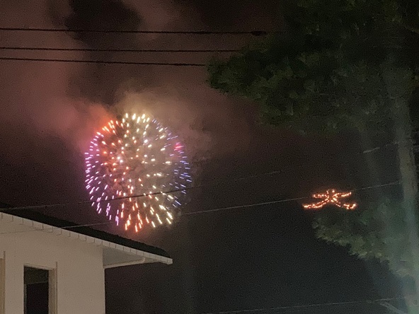 なんと、この日は強羅で、大文字焼と花火大会があるらしく、飲みながら見ました。