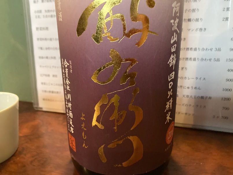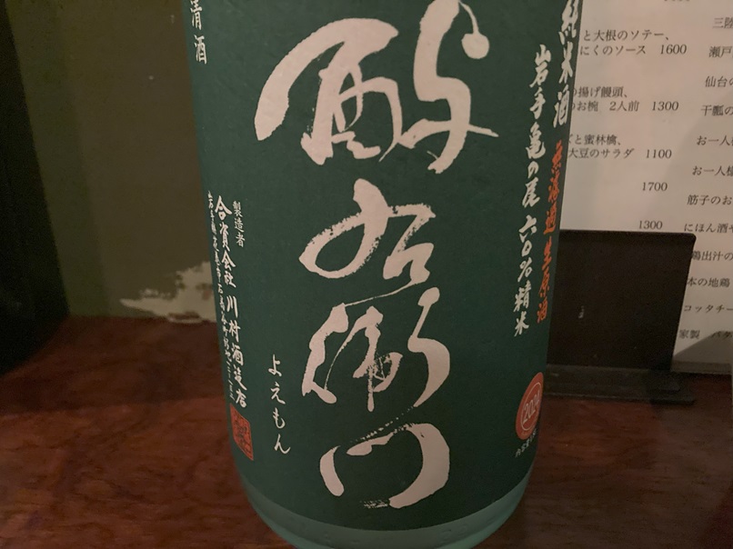 店の名前にもなっている日本酒は、選び抜かれたもののみで、品揃えは少ないですが、どれも美味しいです。「よえもん」、「鯉川」、「風の森」が私の好みです。