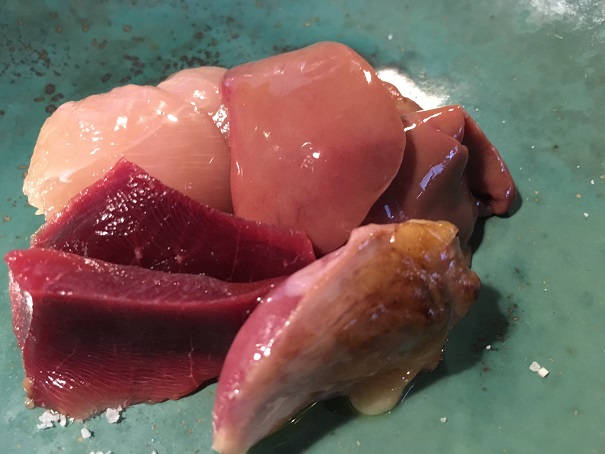 料理はどれも美味しいのですが、この日は軍鶏ロックが最高に美味しかったです。臭みもまったくなく、もう素材だけで美味しい、という感じです。あとは、滅多に食べない「ほや」も美味しかったです。あとは、定番のラーメンとレーズンバターサンドです。