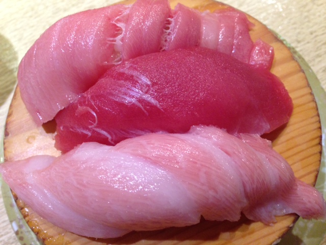 回転寿司の中では評判が高いので、行ってみました。すると、回転している寿司はなく、職人さんが握っていました。混雑すると、回転させるのかもしれません。