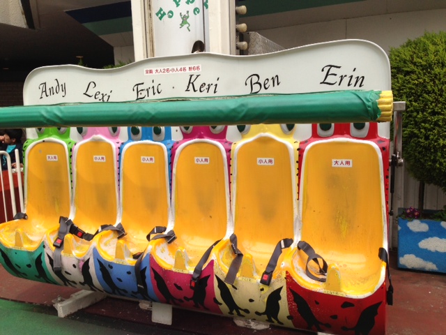 子どもが乗るアトラクションに、太った大人が乗ろうとして、安全バーがお腹が邪魔して乗ることできなかったのも、愛嬌。(私じゃないです。)