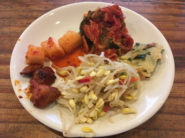 メインを1つ頼むと、キムチやナムルやチヂミなどが、いろいろと食べ放題になるようです。
