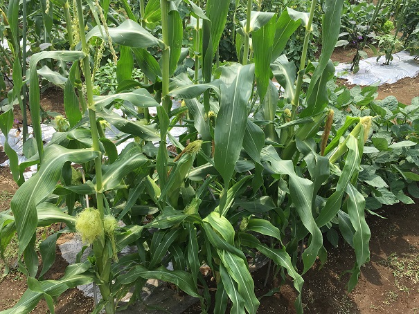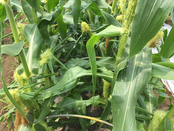 トウモロコシが虫に食われていて、殺虫剤を撒いてもらいました。トウモロコシを有機で育てるのは、すごく大変だと改めて思いました。