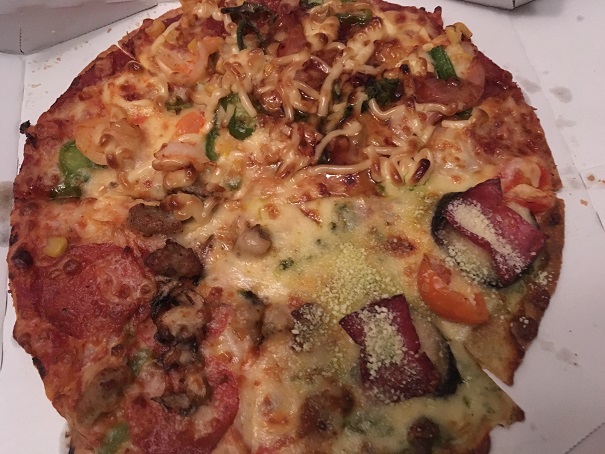 もう少し上品なピザが食べたかったのですが、仕方ないですね。注文したときが、一番、盛り上がったときでした。