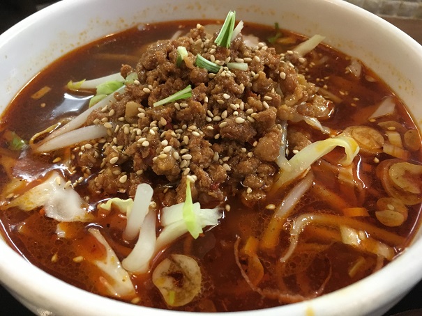 出てきたラーメンは思いのほか黒っぽくてびっくりしました。肉は確かに山盛りでした。3種類の肉があったと思うのですが、豚バラのチャーシューの脂身が多すぎるうえ、脂っこくて、かなり残念でした。