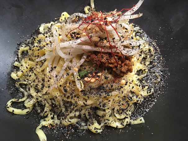 汁なしの黒担々麺、ちょっと太麺で、胡麻がたっぷりで、普通に美味しいですが、少し、甘ったるすぎるのが私の好みではないです。