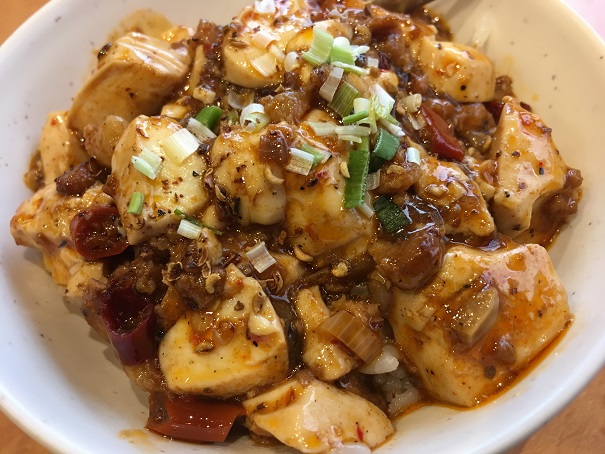 セットの麻婆豆腐、オプションの餃子、どちらもサイドメニューとしては素敵ですが、メインを張るには、ちょっと華がない印象です。卓上の食べる辣油と山椒で味を変えながら食べて盛り上がる感じです。