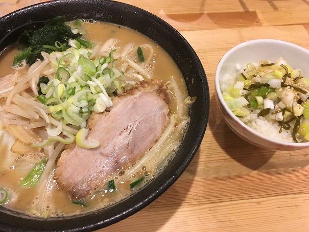 何となく味噌ラーメンがお勧めっぽかったので、味噌ラーメンを頼み、ランチタイムは100円でミニねぎ飯がセットとしてつけられたので、頼みました。