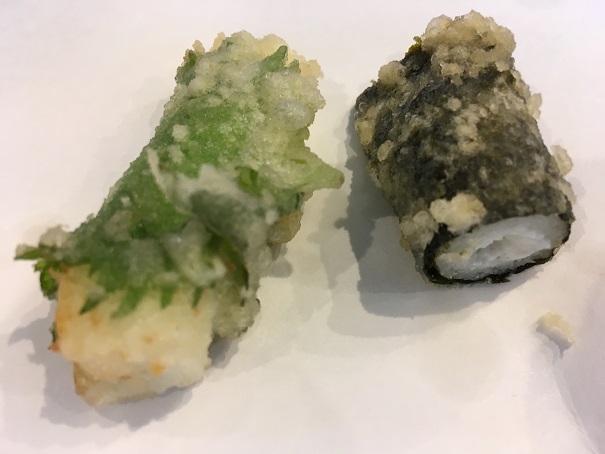 エビ、長芋、烏賊、ホタテ、インゲン、ゴボウ、穴子、キス、サツマイモ、どれも美味しかったですが、烏賊とホタテの塩レモンで食べたものが特に好みでした。
