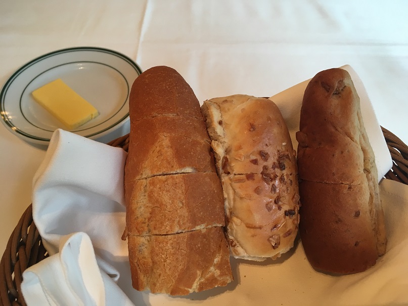 すると、最初に、パンが3種類、バターとともに運ばれてきました。