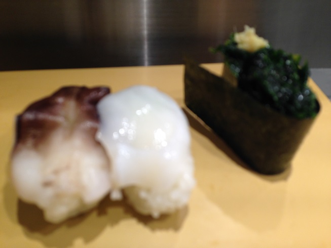 記憶は定かではないのですが、まぐろ、烏賊、さば、こはだ、あじ、いわし、カンパチ、漬けマグロ、えんがわ、とり貝、活タコ、生のり、タイ、中トロを食べました。写真を撮っていないのを含めて、20貫以上です。