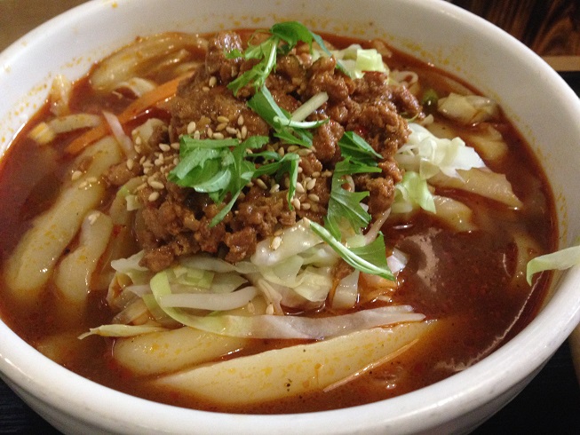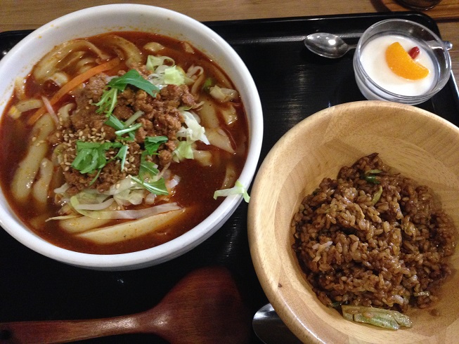 この油そば、ラーメンよりも低カロリーで健康的とうたっているんですが、信じがたいところです。この後、玉ねぎたっぷり入れて、辛いやつもたっぷり入れて食べます。