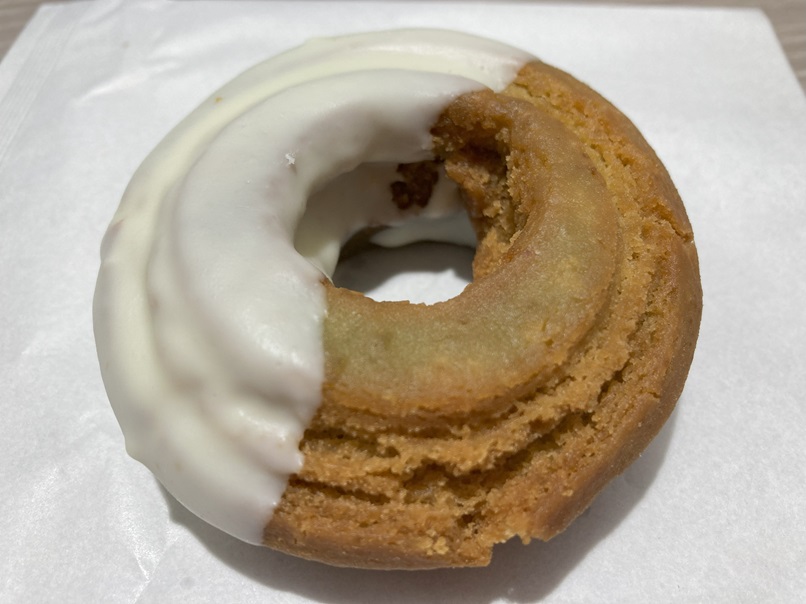 逆に地味な硬いドーナッツのほうが、シンプルだけど、予想外に硬めの生地で、なんかクセになりそうな味でした。コーヒーにぴったりという印象です。