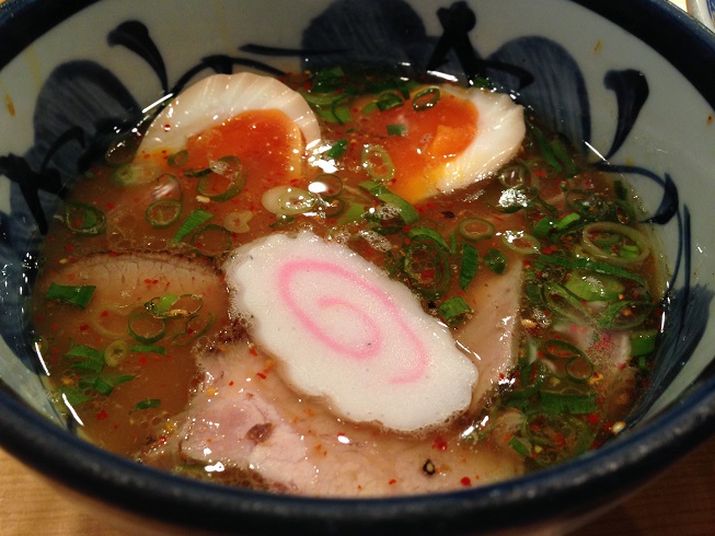 出て来た麺はかなり太めでしっかりした感じ。つけ汁は魚介の風味が効いており、美味しかったのですが、私にはちょっと濃すぎました。あと、熱すぎて手で器を持てなかったので、もう少しぬるめにして欲しかったです。