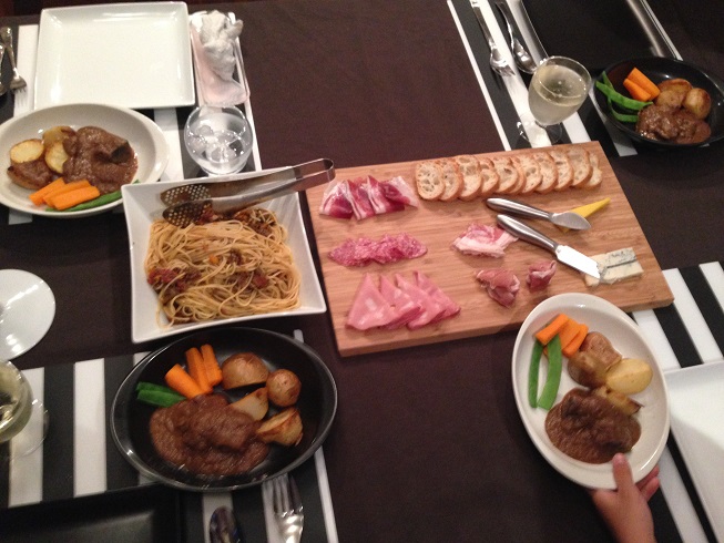 今日も節約生活。家でホームパーティー。赤ワイン煮、美味しかったけど、元の肉が縮んでしまったのが心残り。