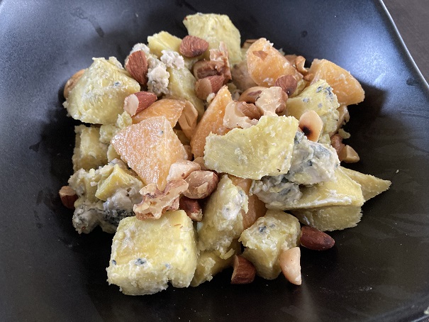 ハンバーグとゴルゴンゾーラのパスタが、老人の腹には効きました。
