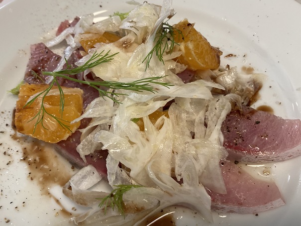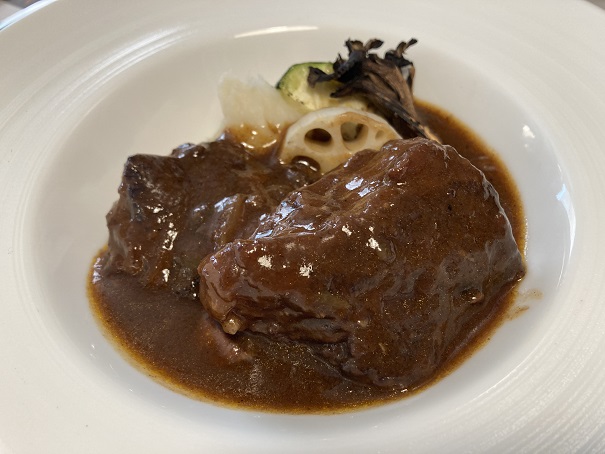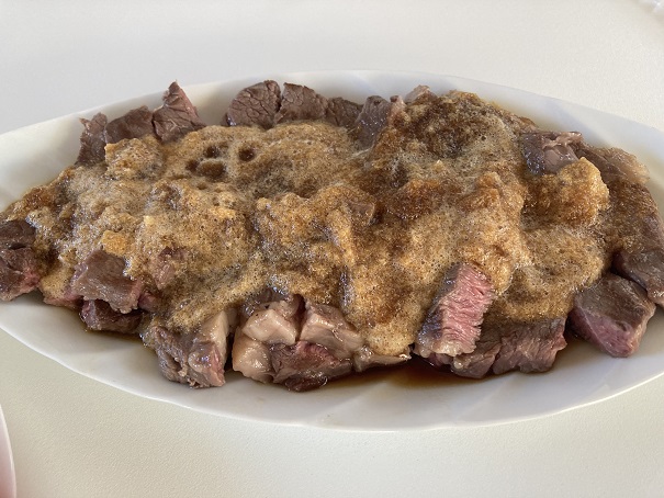 この日食べた中では、サーロインステーキか、天然ぶりのカルパッチョが特に美味しかったです。牛肉の赤ワイン煮も良かったのですが、ちょっと味が濃すぎる気がしました。