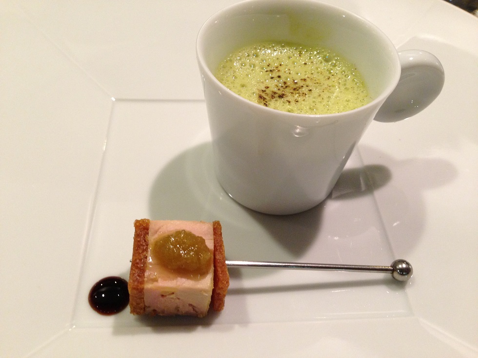 アミューズはフォアグラのコンフィと新牛蒡のカプチーノで、このカプチーノが絶品でした。もう少し飲みたいと思いました。