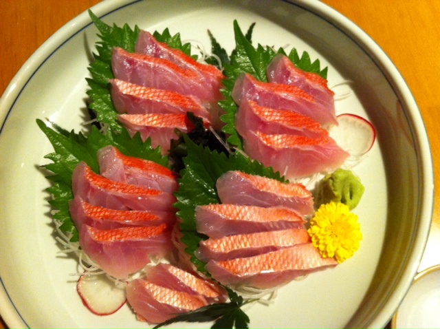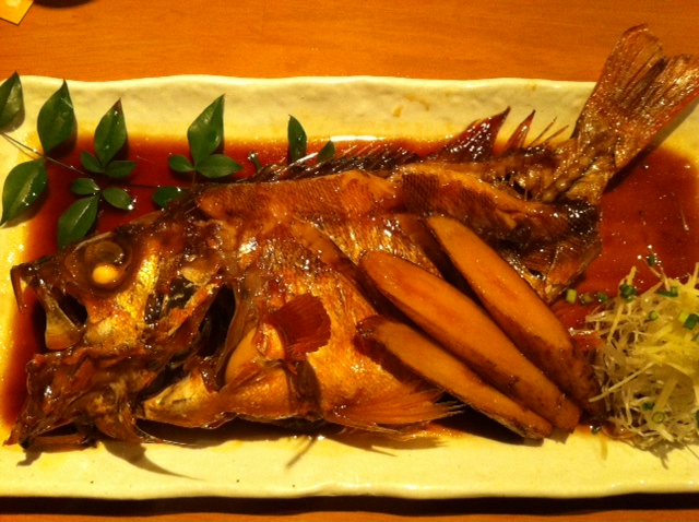 いやあ、魚が美味しいです。魚を丸ごと1匹注文して、半分を刺身、もう半分を煮魚もしくは焼魚にしてくれます。1度で2回、まさに二刀流です。本当は金目鯛にしたかったのですが、魚が大きいと言われて断念しました。隣のテーブルで金目鯛を注文していたのを見て、やっぱり食べたくなりました。また行こうと心に決めました。前のテーブルはシマアジで、これも良さげでした。もちろん、メバルも身がプリプリしていて、量も適切で美味しかったです。