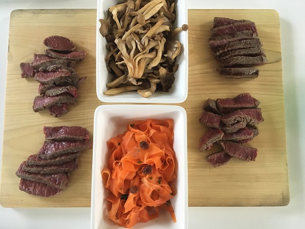メインとしては、鶏にするか、豚の生ハムにするか、牛タンにするか迷ったのですが、生ハムだと、ありきたりかと思って、牛タンにしました。