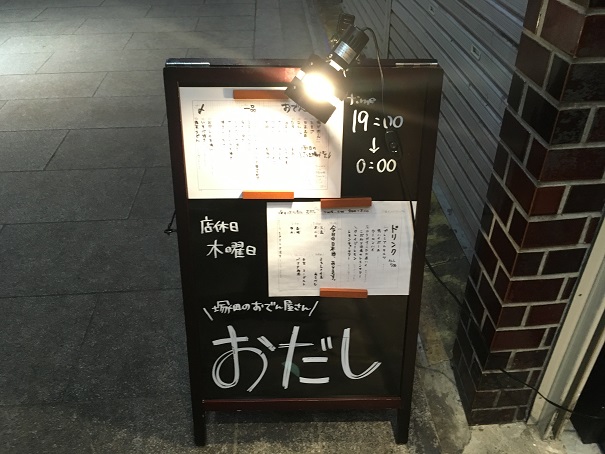 おだし、見事なコンセプトのお店だと思いました。昼はおでんの具を売り、夜は少し上品な立ち飲みだなんて組み合わせがいいですね。