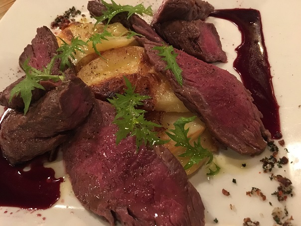 ここまでは良いのですが、肉は最悪でした。牛サガリのローストなんですが、無茶苦茶かたくて、食べるのに難儀しました。顎が痛くなるほどです。うーん、こういう料理なのかもしれませんが、万人受けしない気がしますけど、どうなんでしょう。