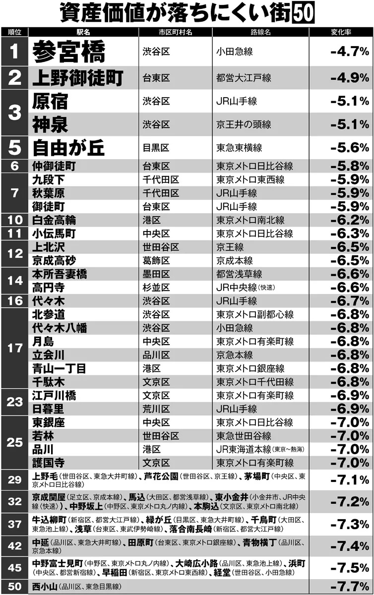 ともかく、吉祥寺が落ちる街に入っていなくて良かった、良かった。7.7%以上下落するものの、一安心です。