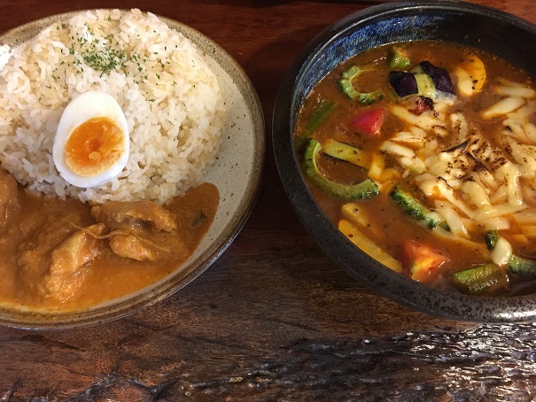 出て来たら、チキンマサラとスープカレーは別なんですね。2種類のカレーを食べれてラッキーでした。チキンはがっつり大きく、食べごたえありましたし、スープカレーも野菜たっぷり、スープの量も十分でした。そして、焼きチーズがいい塩梅で美味しかったです。