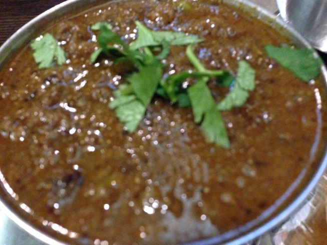 この店はナンが大きいことで有名(ただし、ナンが大きくないカレー専門店って、あまり見たことがないですけど…)で、大きなナンが来ると思っていたら、形状も円の小さめのナンでした。ちょっと期待外れ。