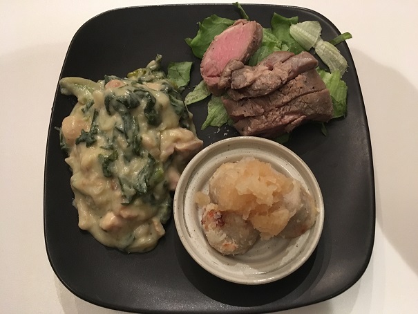200gのステーキがデフォルトで、サラダ、スープ付きです。ライスは別料金でしたが、炭水化物ダイエット中なので、注文しませんでした。