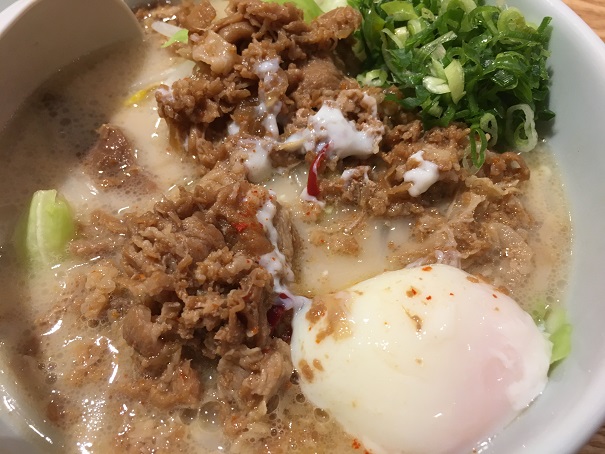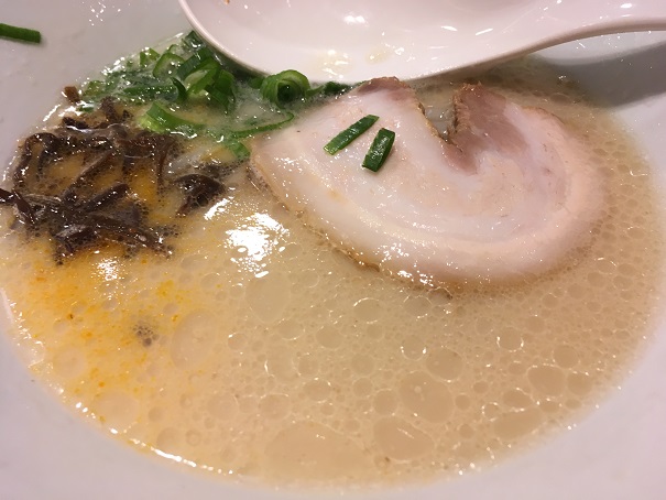 ラーメンは豚骨にしては、オーソドックスな感じで、美味しいのですが、パンチが足りないので、卓上の揚げニンニクと胡麻で味を作りながら楽しみました。生ニンニクは昼なので、自粛しました。