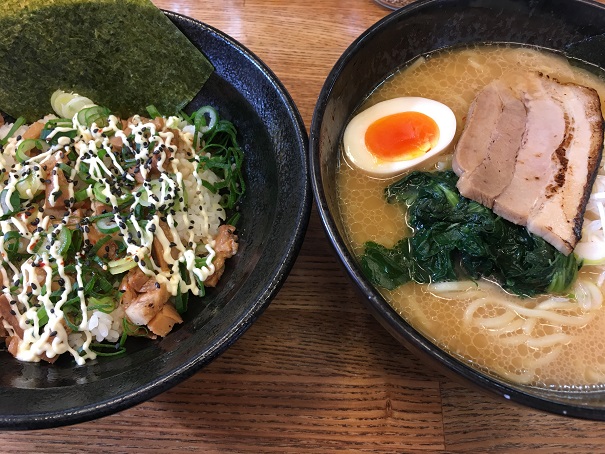 ラーメン屋で丼ものとのセットってあまり頼まないのですが、券売機の脇にあった、おすすめの文字につられて、満足セットだかお得セットだかいうラーメンとチャーシュー丼的なものを注文しました。