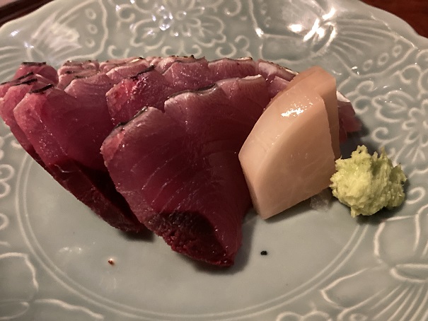 定番のシャモロックの肝刺しはもちろんのこと、カツオの刺身と白子の天ぷら、どちらも最高でした。