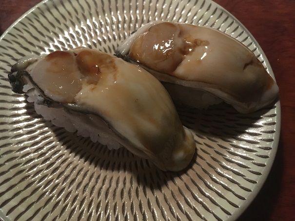 この日は、生牡蠣の握りが絶品でした。まず牡蠣が大きくて、しっかりと牡蠣らしい味がしていて良かったですし、意外にも少量のご飯と相性が良かったです。